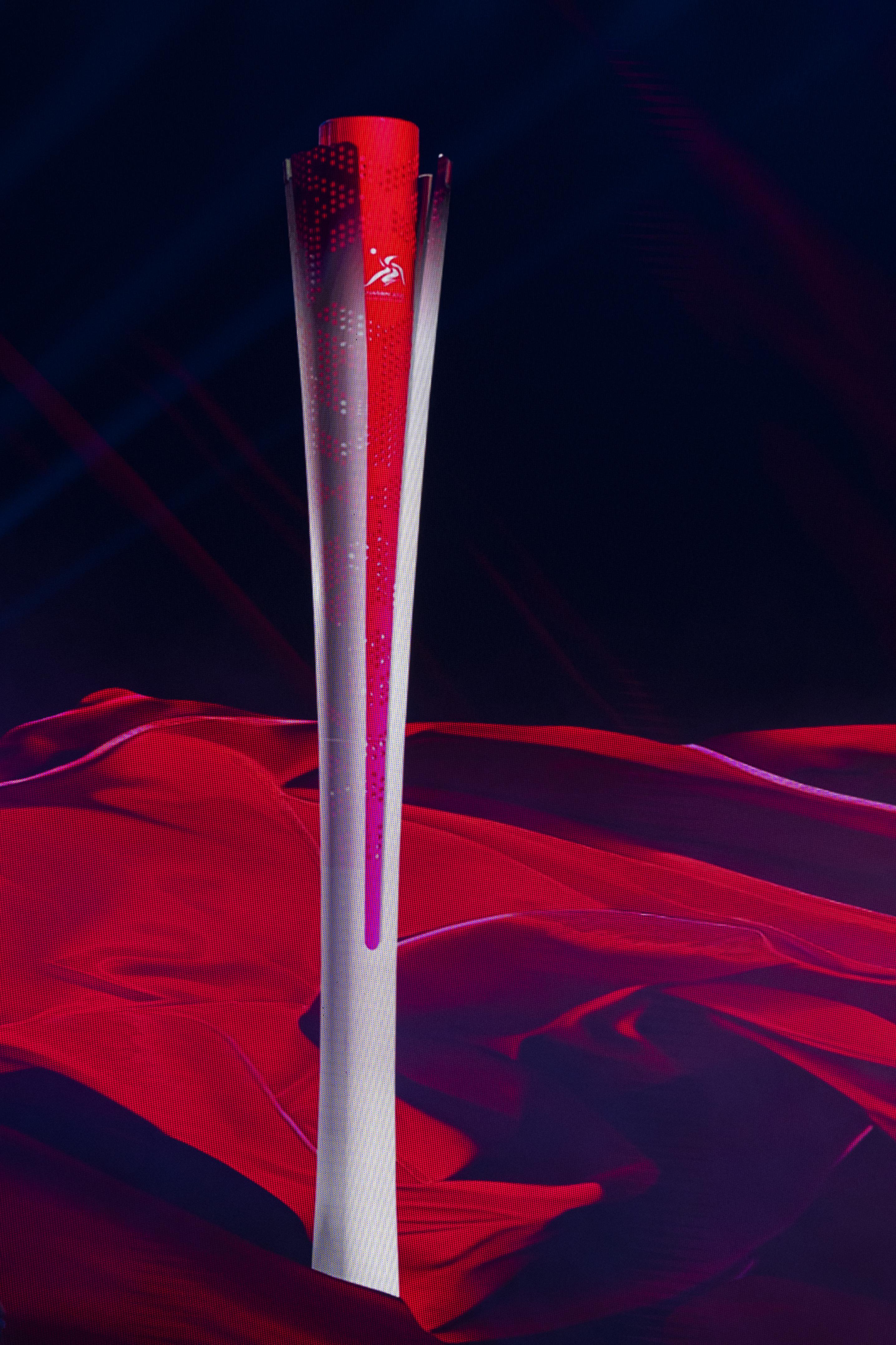 据介绍,亚冬会火炬整体高度约735毫米,顶部直径约115毫米,手持部位直径约50毫米。外形设计具有强烈国际化审美和中国古典与现代艺术相结合的美感,充分展现了中国式现代化和文化自信。火炬顶部出火口的位置采用了花蕊镂空造型与丁香花造型相结合,上部燃烧舱外壁选取了镂空雪花作为造型元素,外壳则设计为一朵蓬勃盛开的丁香花,采用透明冰晶到雪花白渐变,内芯色彩采用中国红到丁香紫渐变。